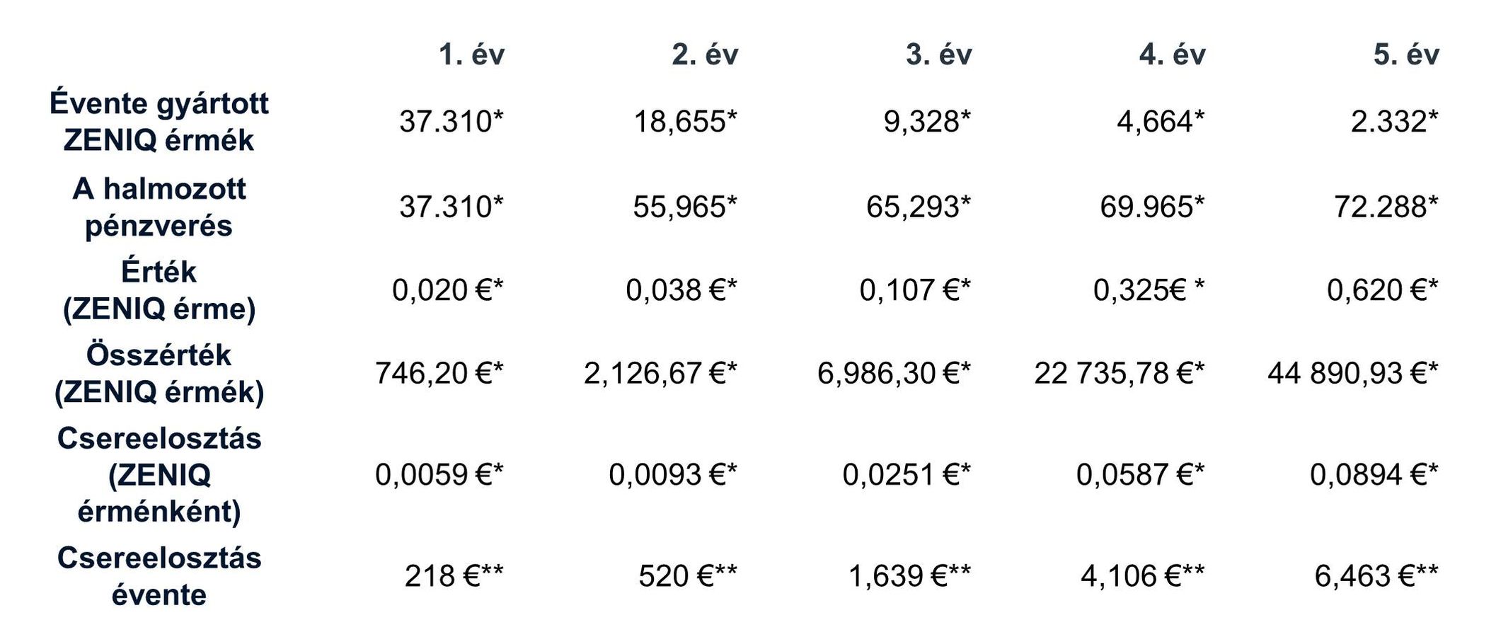 Kibocsátás bányászaton (1%) és verésen (99%) csak a ZENIQ HUB -on